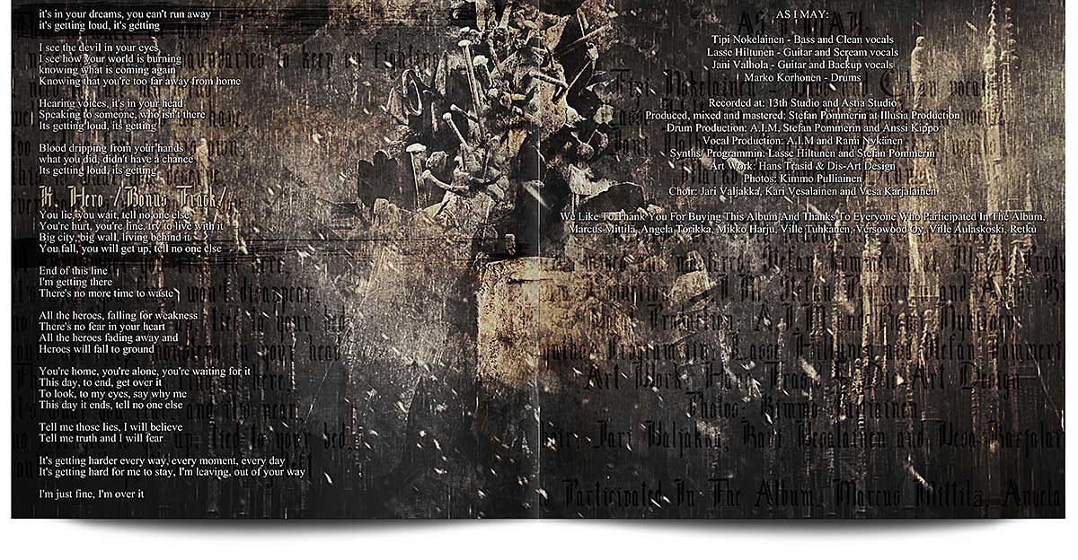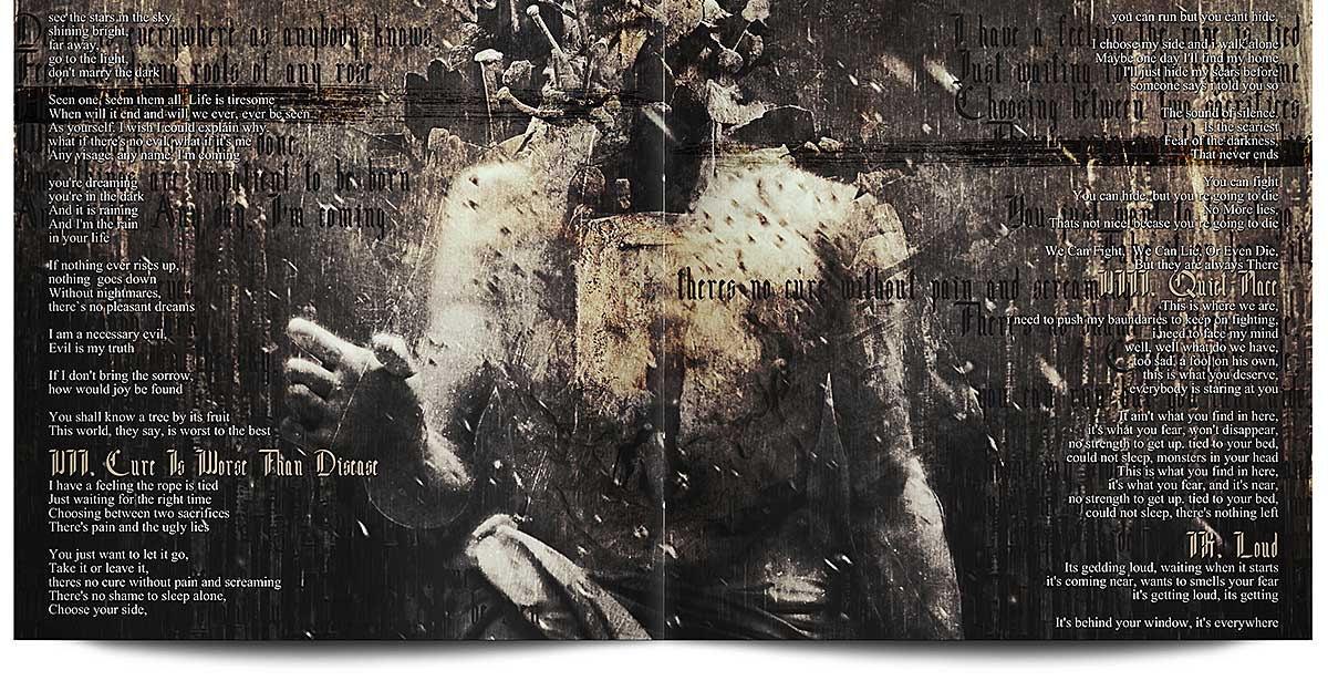 Artwork, DigiPak and GateFold Vinyl Record layout for Melodic Modern Metal band from Finland.
